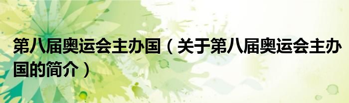 本文關于第八屆奧運會主辦國的簡介就講解完畢,希望對大家有所幫助。
