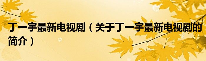 大家好,丁一宇最新電視劇,關于丁一宇最新電視劇的簡介很多人還不知道,現在讓我們一起來看看吧!
