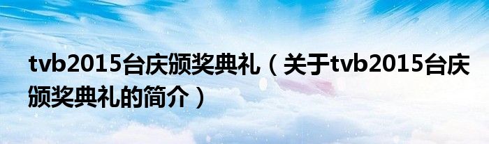 本文關于tvb2015臺慶頒獎典禮的簡介就講解完畢,希望對大家有所幫助。