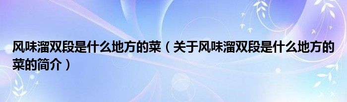 本文關于風味溜雙段是什么地方的菜的簡介就講解完畢,希望對大家有所幫助。
