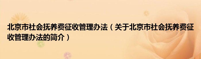 本文關于北京市社會撫養費征收管理辦法的簡介就講解完畢,希望對大家有所幫助。