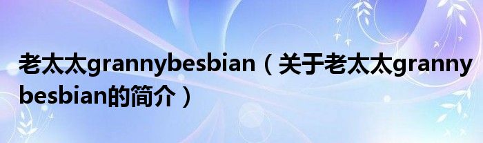 本文關于老太太grannybesbian的簡介就講解完畢,希望對大家有所幫助。