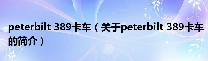 本文關于peterbilt 389卡車的簡介就講解完畢,希望對大家有所幫助。