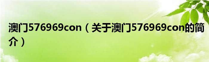 本文關(guān)于澳門576969con的簡(jiǎn)介就講解完畢,希望對(duì)大家有所幫助。