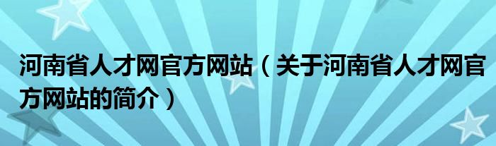 本文關(guān)于河南省人才網(wǎng)官方網(wǎng)站的簡介就講解完畢,希望對大家有所幫助。