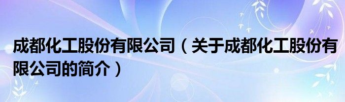 本文關于成都化工股份有限公司的簡介就講解完畢,希望對大家有所幫助。