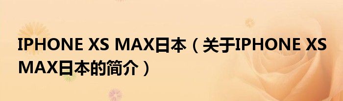 本文關(guān)于IPHONE XS MAX日本的簡介就講解完畢,希望對大家有所幫助。