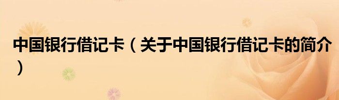 本文關于中國銀行借記卡的簡介就講解完畢,希望對大家有所幫助。