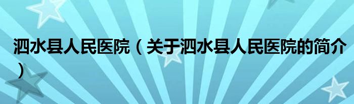 本文關于泗水縣人民醫院的簡介就講解完畢,希望對大家有所幫助。