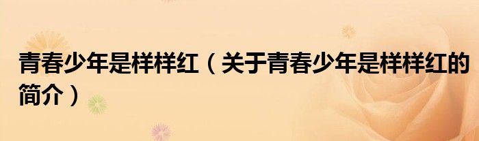 本文關于青春少年是樣樣紅的簡介就講解完畢,希望對大家有所幫助。