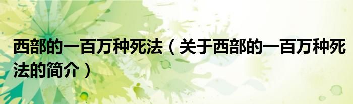 本文關(guān)于西部的一百萬種死法的簡介就講解完畢,希望對大家有所幫助。