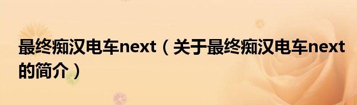 本文關(guān)于最終癡漢電車next的簡介就講解完畢,希望對大家有所幫助。