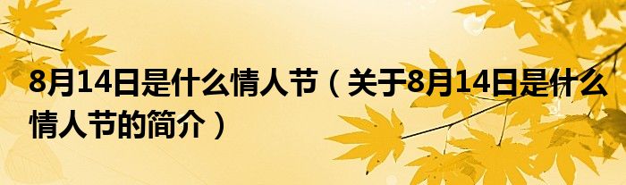 本文關(guān)于8月14日是什么情人節(jié)的簡(jiǎn)介就講解完畢,希望對(duì)大家有所幫助。