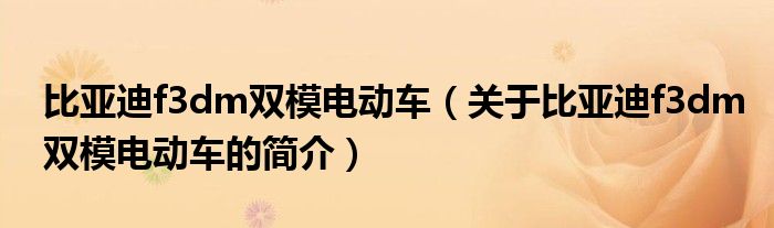 本文關于比亞迪f3dm雙模電動車的簡介就講解完畢,希望對大家有所幫助。