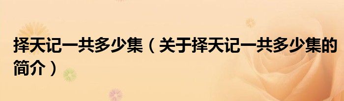 本文關(guān)于擇天記一共多少集的簡(jiǎn)介就講解完畢,希望對(duì)大家有所幫助。