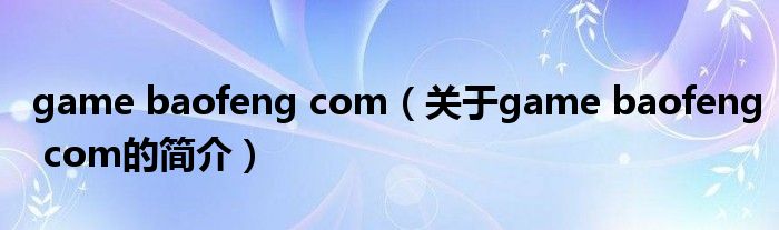 大家好,game baofeng com,關于game baofeng com的簡介很多人還不知道,現在讓我們一起來看看吧!