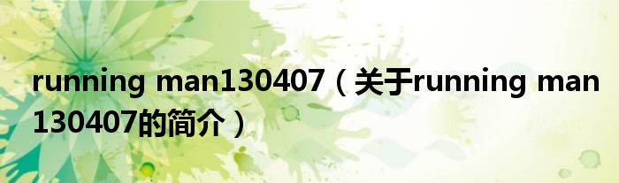 本文關(guān)于running man130407的簡介就講解完畢,希望對(duì)大家有所幫助。