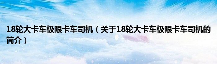 本文關于18輪大卡車極限卡車司機的簡介就講解完畢,希望對大家有所幫助。