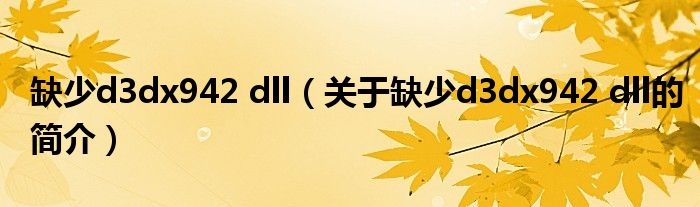 本文關于缺少d3dx942 dll的簡介就講解完畢,希望對大家有所幫助。