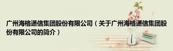 本文關于廣州海格通信集團股份有限公司的簡介就講解完畢,希望對大家有所幫助。