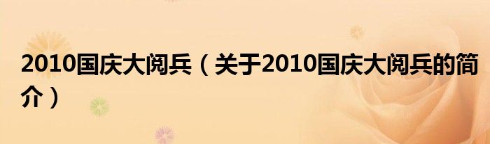 本文關(guān)于2010國(guó)慶大閱兵的簡(jiǎn)介就講解完畢,希望對(duì)大家有所幫助。