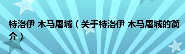 大家好,特洛伊 木馬屠城,關于特洛伊 木馬屠城的簡介很多人還不知道,現在讓我們一起來看看吧!