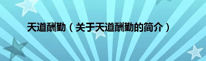 大家好,天道酬勤,關于天道酬勤的簡介很多人還不知道,現在讓我們一起來看看吧!