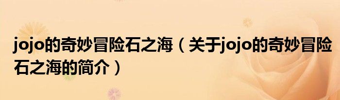 大家好,jojo的奇妙冒險石之海,關于jojo的奇妙冒險石之海的簡介很多人還不知道,現在讓我們一起來看看吧!