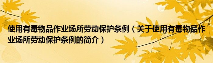 本文關于使用有毒物品作業場所勞動保護條例的簡介就講解完畢,希望對大家有所幫助。