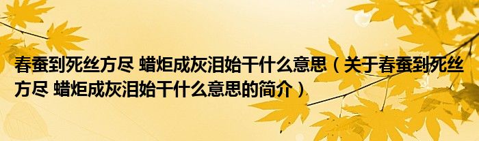 本文關于春蠶到死絲方盡 蠟炬成灰淚始干什么意思的簡介就講解完畢,希望對大家有所幫助。