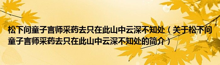 本文關于松下問童子言師采藥去只在此山中云深不知處的簡介就講解完畢,希望對大家有所幫助。