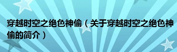 本文關于穿越時空之絕色神偷的簡介就講解完畢,希望對大家有所幫助。