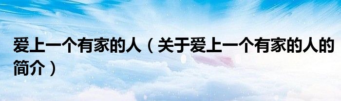 大家好,愛上一個(gè)有家的人,關(guān)于愛上一個(gè)有家的人的簡(jiǎn)介很多人還不知道,現(xiàn)在讓我們一起來看看吧!