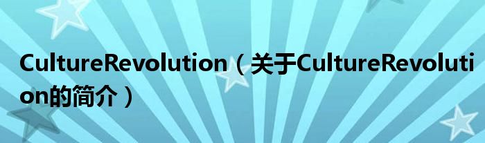 大家好,CultureRevolution,關(guān)于CultureRevolution的簡介很多人還不知道,現(xiàn)在讓我們一起來看看吧!