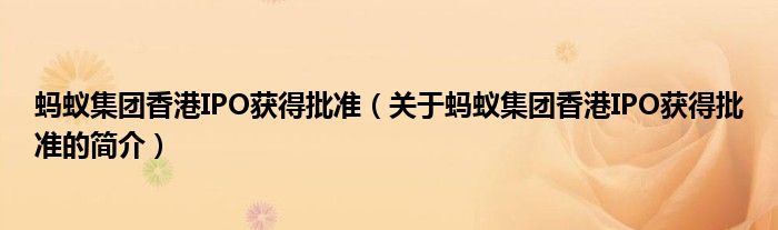 螞蟻集團香港IPO獲得批準(關于螞蟻集團香港IPO獲得批準的簡介)