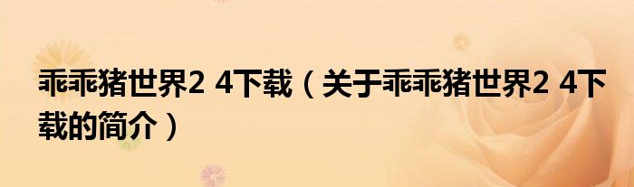本文關于乖乖豬世界2 4下載的簡介就講解完畢,希望對大家有所幫助。