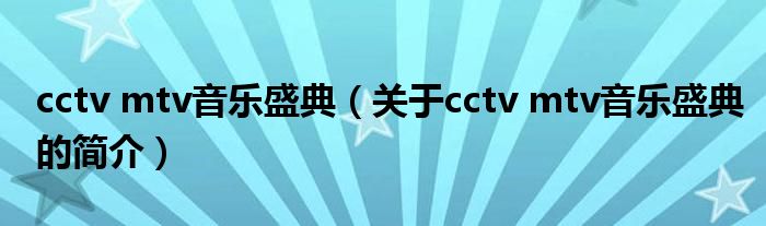本文關于cctv mtv音樂盛典的簡介就講解完畢,希望對大家有所幫助。