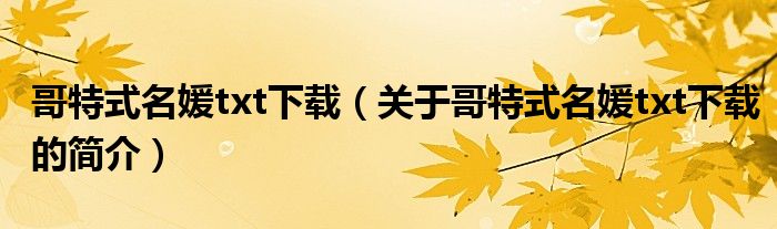 本文關于哥特式名媛txt下載的簡介就講解完畢,希望對大家有所幫助。