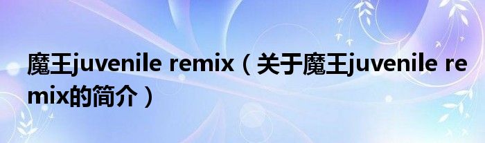 魔王juvenile remix(關于魔王juvenile remix的簡介)