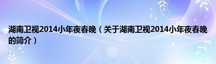 本文關于湖南衛視2014小年夜春晚的簡介就講解完畢,希望對大家有所幫助。