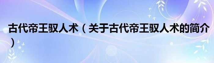 本文關于古代帝王馭人術的簡介就講解完畢,希望對大家有所幫助。