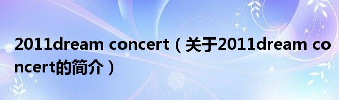 本文關于2011dream concert的簡介就講解完畢,希望對大家有所幫助。