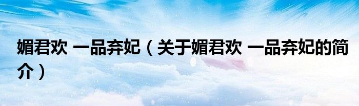 大家好,媚君歡 一品棄妃,關(guān)于媚君歡 一品棄妃的簡介很多人還不知道,現(xiàn)在讓我們一起來看看吧!