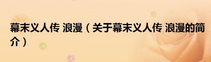本文關于幕末義人傳 浪漫的簡介就講解完畢,希望對大家有所幫助。