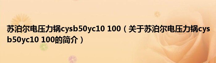 本文關于蘇泊爾電壓力鍋cysb50yc10 100的簡介就講解完畢,希望對大家有所幫助。