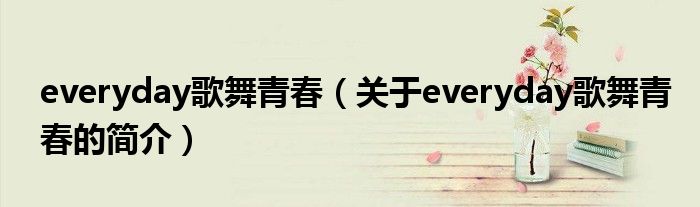 大家好,everyday歌舞青春,關于everyday歌舞青春的簡介很多人還不知道,現在讓我們一起來看看吧!