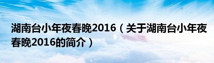 本文關(guān)于湖南臺(tái)小年夜春晚2016的簡(jiǎn)介就講解完畢,希望對(duì)大家有所幫助。