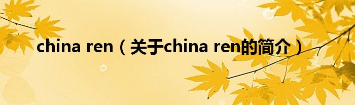 本文關于china ren的簡介就講解完畢,希望對大家有所幫助。