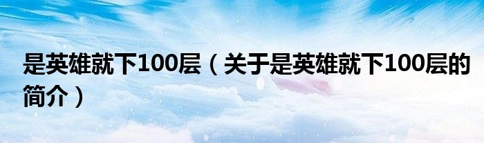 是英雄就下100層(關于是英雄就下100層的簡介)