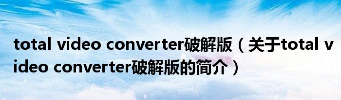 本文關于total video converter破解版的簡介就講解完畢,希望對大家有所幫助。